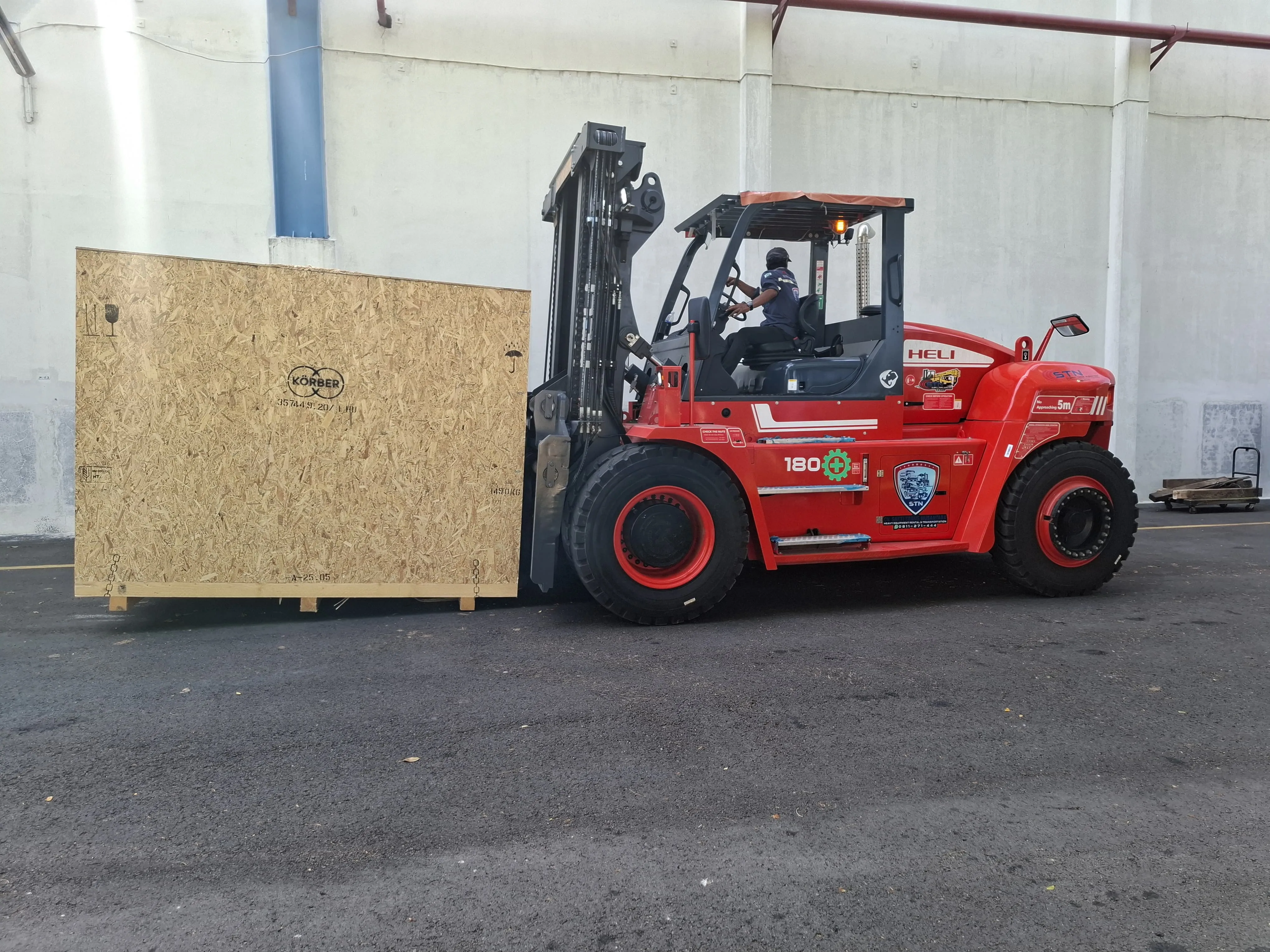 Forklift 10 ton & Forklift 7 ton unloading mesin pabrik bersama