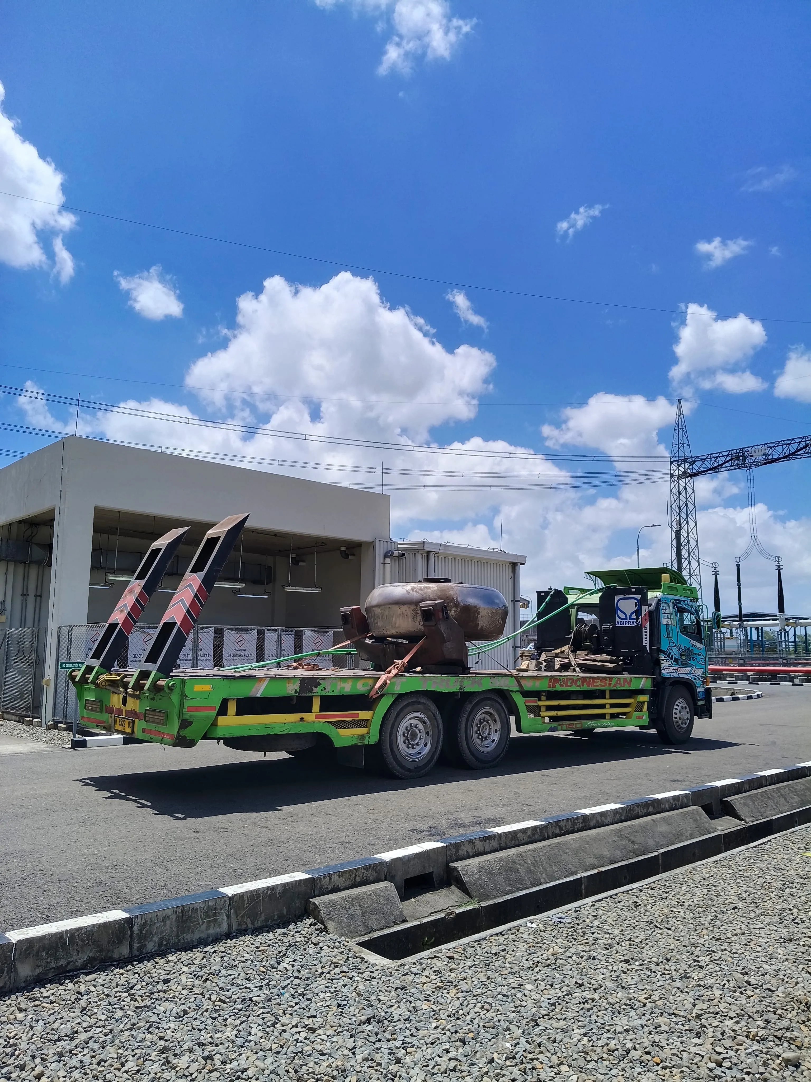 Forklift 7 ton & forklift 3 ton menurunkan mesin pabrik kertas