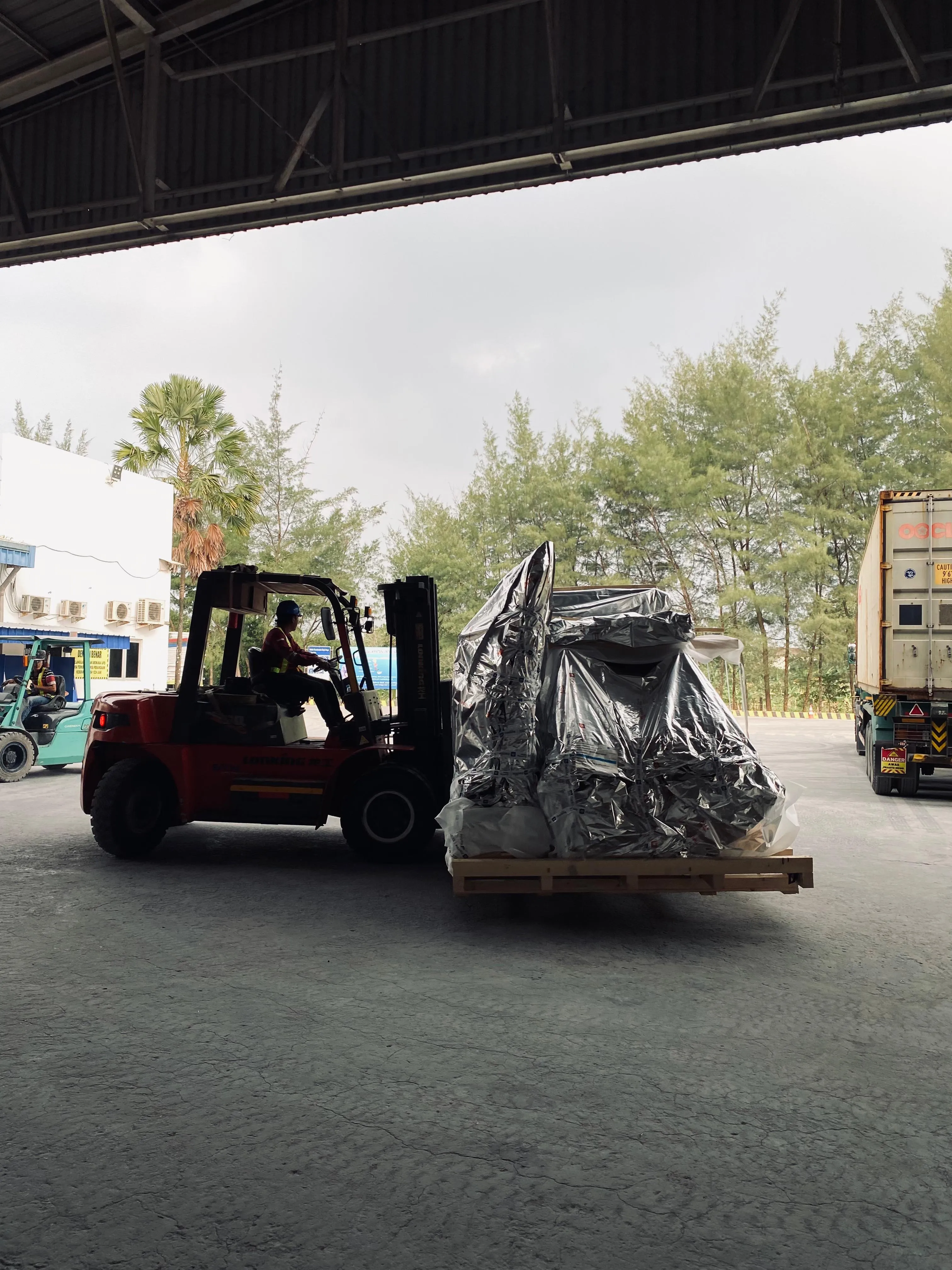 Forklift 10 ton & Forklift 7 ton unloading mesin pabrik bersama